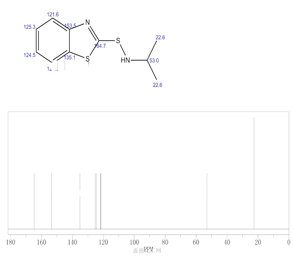 - 英文名称:2-Benzothiazolesulfenamide,N-isopropyl- (6CI,7CI,8CI); N-Isopropyl-2-benzothiazolesulfenamide;N-Isopropyl-2-benzothiazolylsulfenamide; N-Isopropylbenzothiazol-2-sulfenamide;[2-(Isopropylamino)thio]benzothiazole