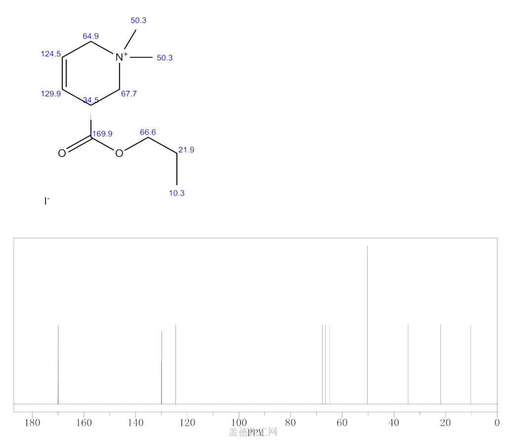 - 英文名称:Pyridinium,1,2,3,6-tetrahydro-1,1-dimethyl-3-(propoxycarbonyl)-, iodide (9CI)
