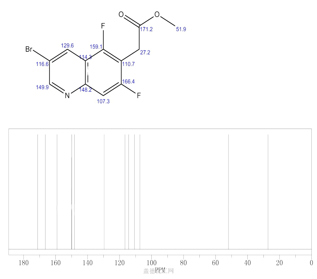 - 中文名:甲基 2-(3-溴-5,7-二氟喹啉-6-基)乙酸酯