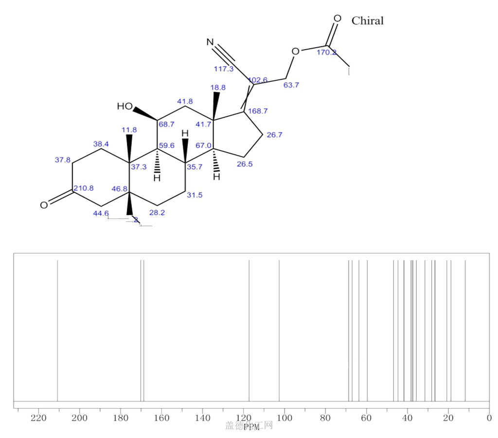 英文名: 22-acetoxy-11β-hydroxy-3-oxo-23,24-dinor-5β-chol-17(20)ξ-ene-21-nitrile