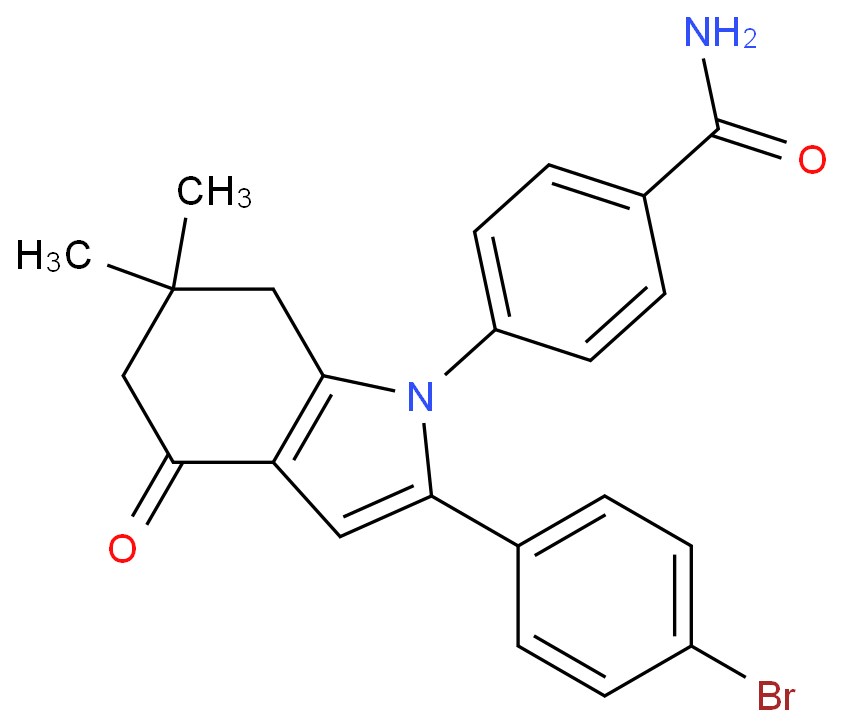 英文名: 4-[2-(4-bromophenyl)-6,6-dimethyl-4-oxo-5,7-dihydroindol-1-yl]benzamide