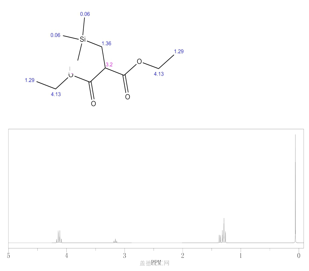 - 英文名称:Malonicacid, [(trimethylsilyl)methyl]-, diethyl ester (6CI,8CI); Propanedioic acid,[(trimethylsilyl)methyl]-, diethyl ester (9CI); Diethyl2-(trimethylsilylmethyl)malonate