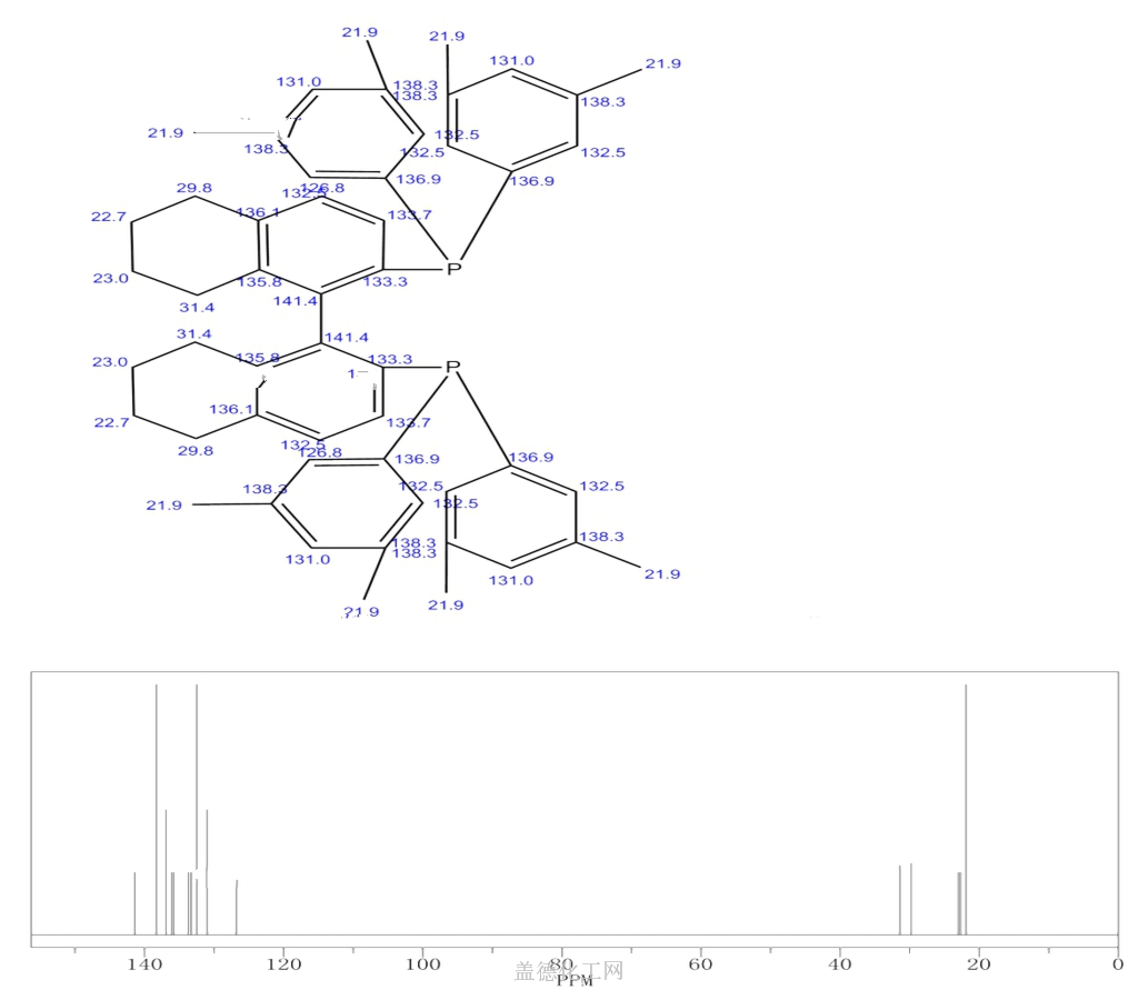 英文名称:Phosphine,(5,5',6,6',7,7',8,8'-octahydro[1,1'-binaphthalene]-2,2'-diyl)bis[bis(3,5-dimethylphenyl)-,(S)-; Phosphine,[(1S)-5,5',6,6',7,7',8,8'-octahydro[1,1'-binaphthalene]-2,2'-diyl]bis[bis(3,5-dimethylphenyl)-(9CI)