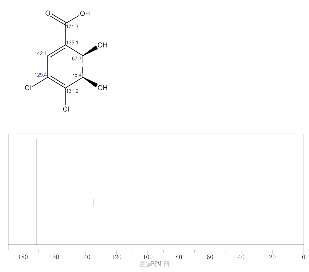 • 别名: 2R,3R)-1-羧基-4,5-二氯-2,3-二羟环己基-4,6-二烯