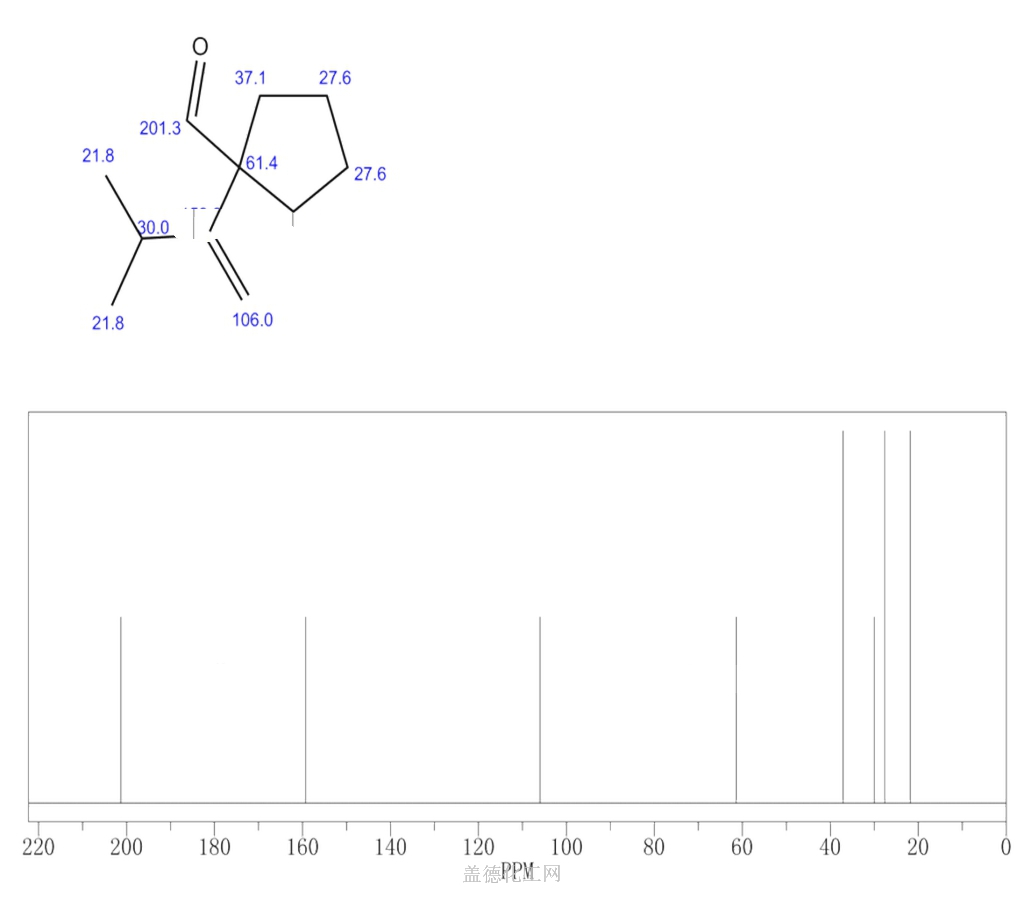- 英文名称:Cyclopentanecarboxaldehyde,1-(1,1-dimethyl-2-propenyl)- (9CI); Cyclopentanecarboxaldehyde, 1-(1,1-dimethylallyl)-(7CI)