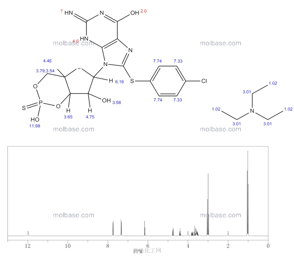 - 英文名: 9-[(4aR,6R,7R,7aS)-2,7-dihydroxy-2-sulfanylidene-4a,6,7,7a-tetrahydro-4H-furo[3,2-d][1,3,2]dioxaphosphinin-6-yl]-2-amino-8-(4-chlorophenyl)sulfanyl-3H-purin-6-one,N,N-diethylethanamine
