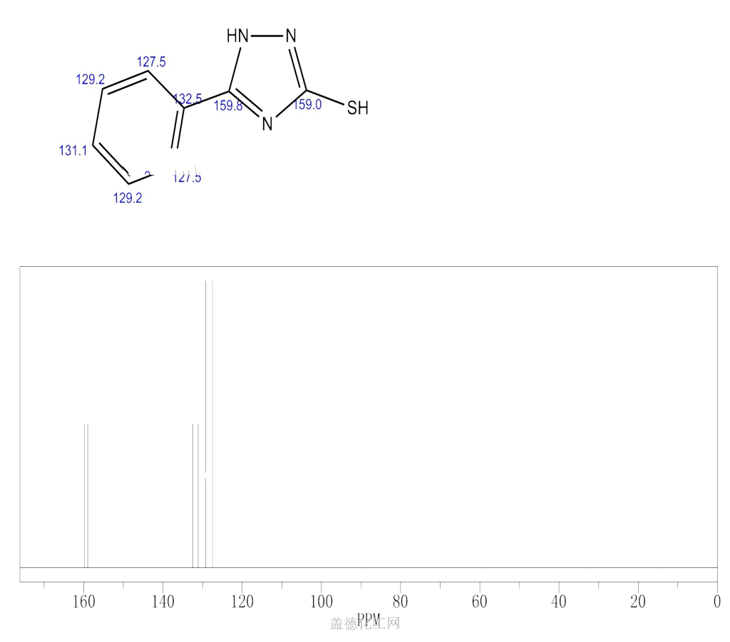 - 英文名称:s-Triazole-3-thiol,5-phenyl- (6CI);D2-1,2,4-Triazoline-5-thione,3-phenyl- (7CI,8CI);1,2-Dihydro-5-phenyl-3H-1,2,4-triazole-3-thione;3-Mercapto-5-phenyl-1,2,4-triazole;3-Phenyl-1,2,4-triazole-5-thiol;3-Phenyl-5-mercapto-s-triazole;5-Phenyl-1,2,4-triazole-3-thiol;5-Phenyl-1H-1,2,4-triazole-3-thiol;5-Phenyl-s-triazole-3-thiol;NSC 11565;3H-1,2,4-Triazole-3-thione,1,2-dihydro-5-phenyl-;