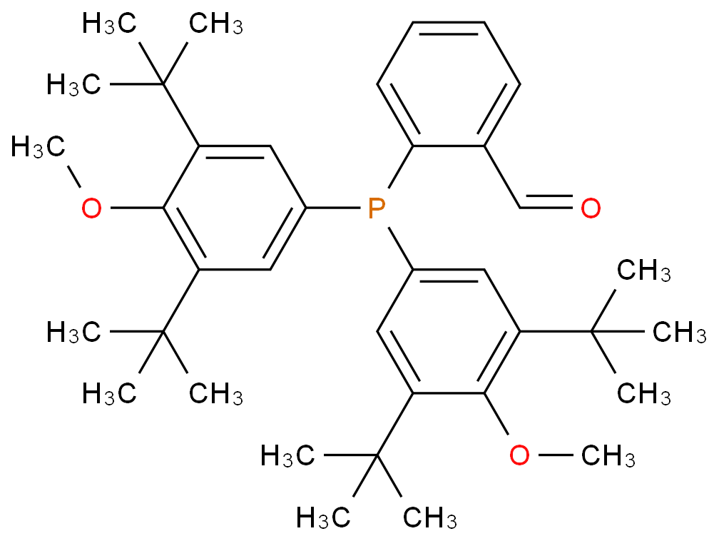 2-[双(3,5-二-叔丁基-4-甲氧苯基)膦基]苯甲醛 别名: 2-[双(3,5-二-叔丁基-4-甲氧苯基)膦基]苯甲醛;2-[双(3,5-二-叔-丁基-4-甲氧基苯基)亚磷基]苯甲醛